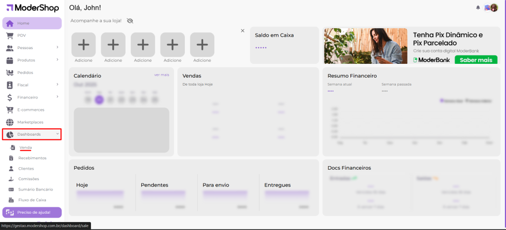 Para localizar este tópico, basta ir no menu “Dashboards” e depois clicar sobre “Venda”.