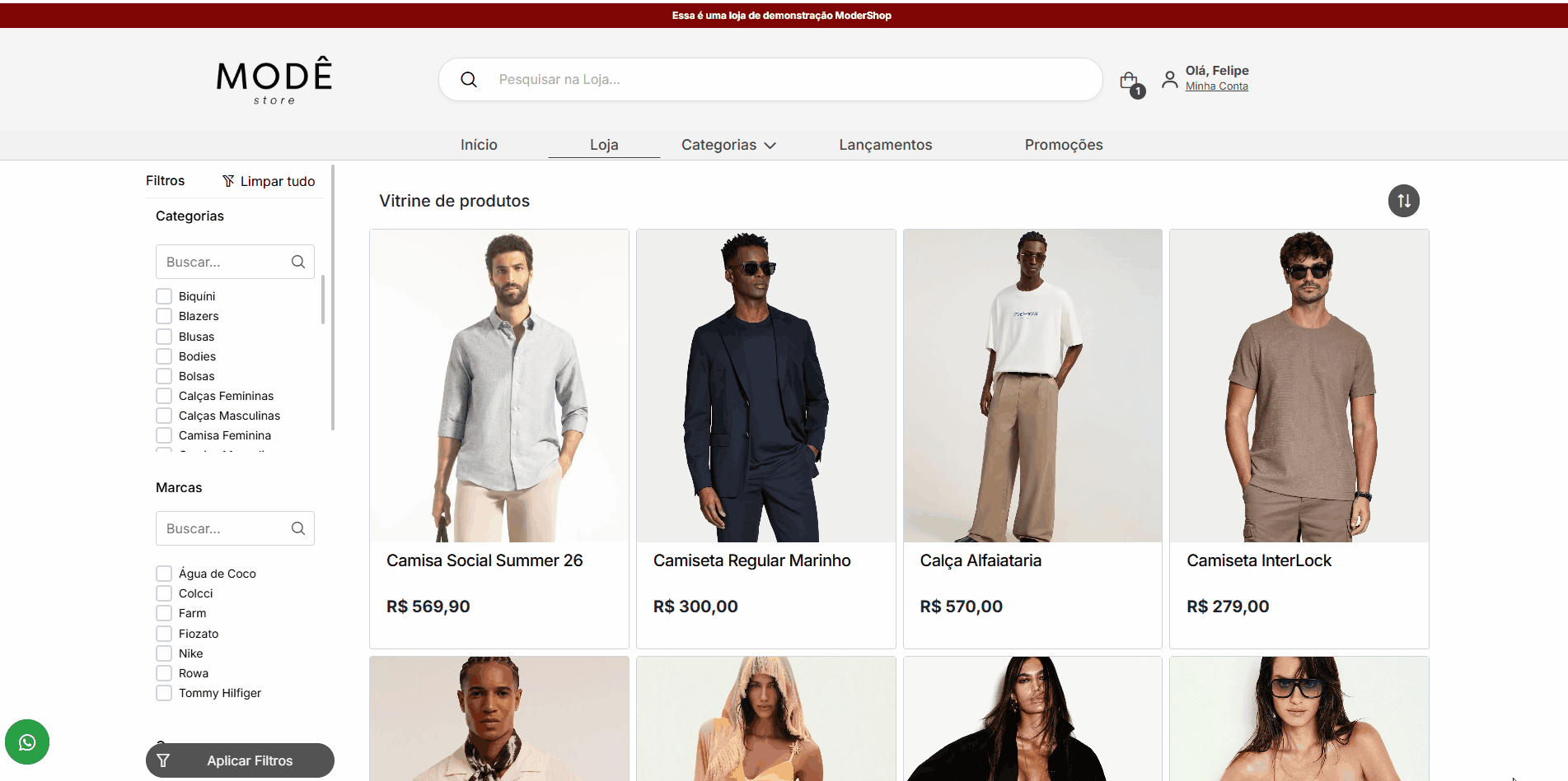 Neste caso, o ModerShop permite informar marca no cadastro do produto, e posteriormente usar esta informação em benefício do gestor e dos clientes
