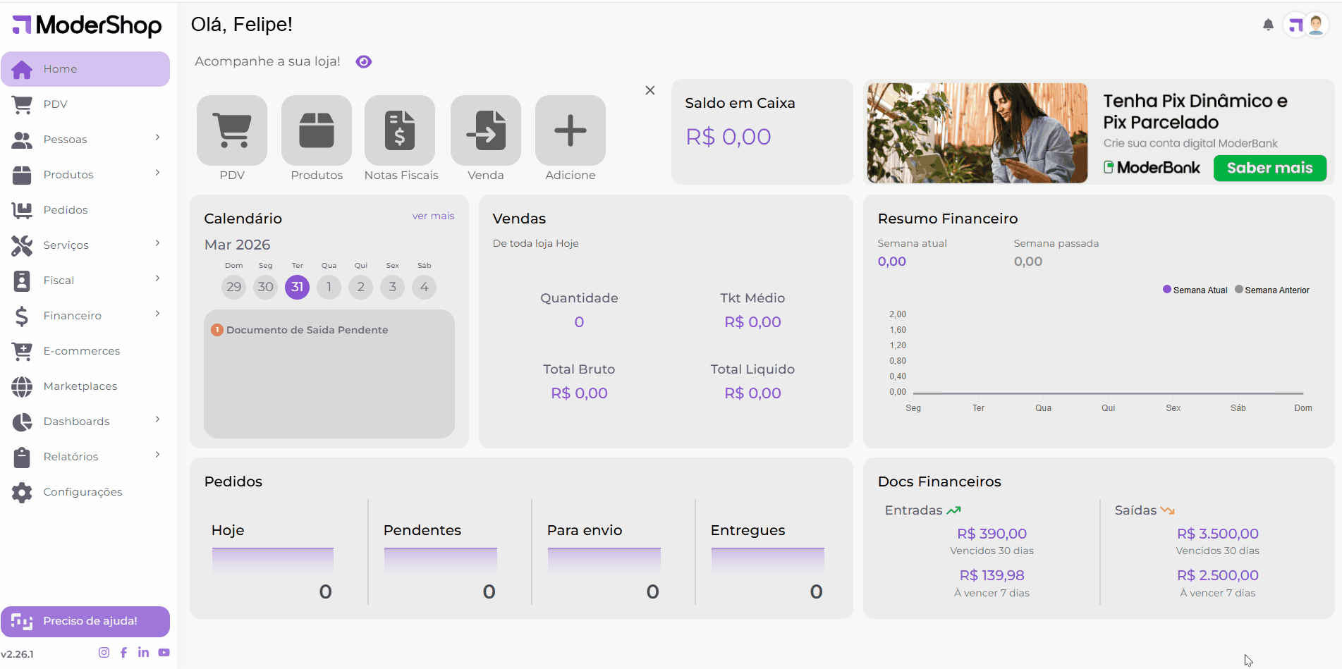 Para conferir seus saldos, você pode clicar no menu “Produtos” > “Estoque” e clicar novamente sobre o submenu “Saldos de Estoque”.